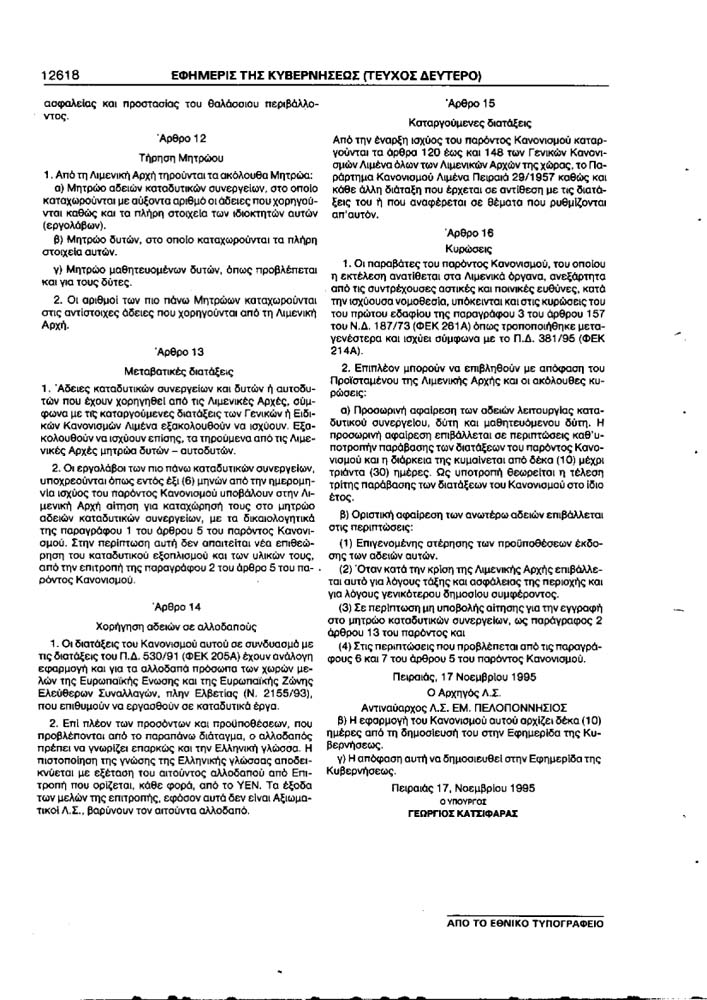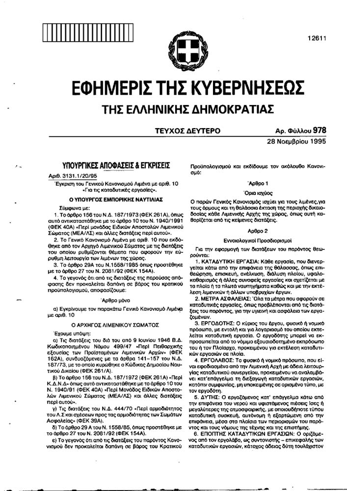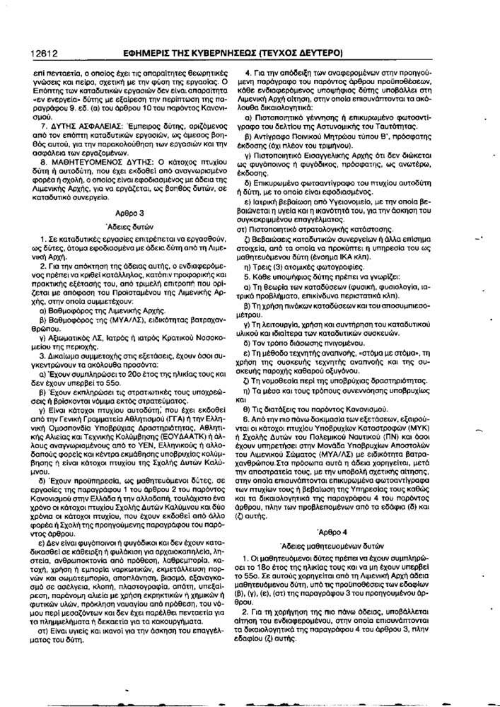 Legislazione Ellenica per l'iscrizione al Registro Sommozzatori in Grecia