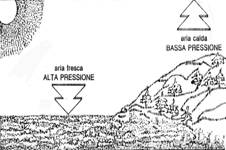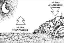 Venti locali o brezze In scala minore rispetto alle variazioni stagionali di pressione e temperatura, si verificano analoghi cambiamenti diurni, dagli effetti simili ma più limitati nello spazio. Particolarmente in estate, la terra è relativamente più calda del mare durante il giorno e più fredda durante la notte. Le differenze di pressione che si producono in questo modo instaurano un sistema di brezze diretto verso terra durante il giorno e verso mare durante la notte. Queste brezze possono raggiungere una distanza di 50 km dalla costa, sia nell'entroterra sia in mare aperto. (vedi figure esplicative qui sotto)