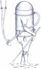 raffigurati cappucci di cuoio con lunghi tubi flessibili, collegati a