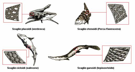 le più comuni; le scaglie ganoidi, infine, si trovano ancora come