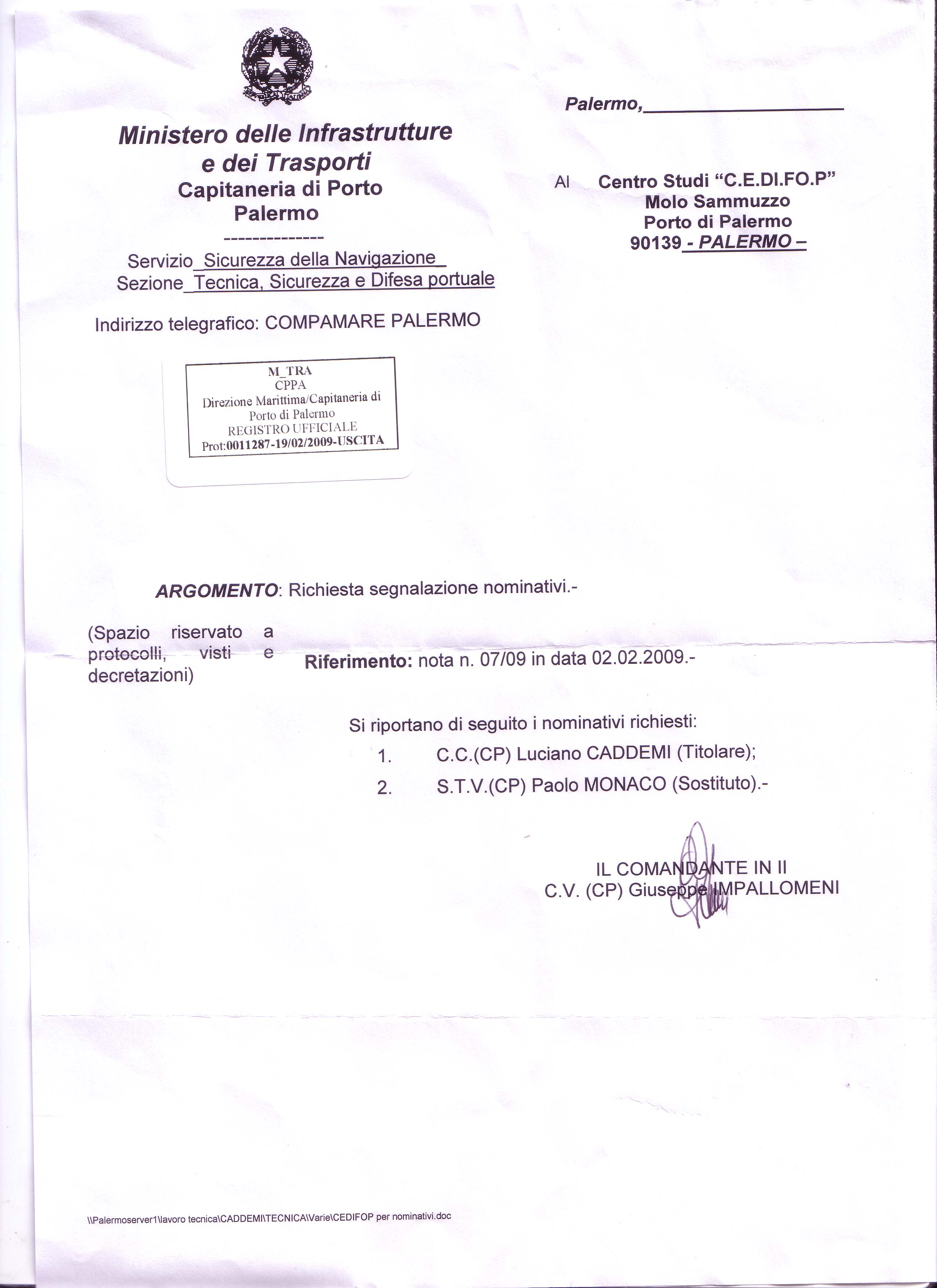 Sommozzatori del Ministero dei Trasporti c/o Capitaneria di Porto, per