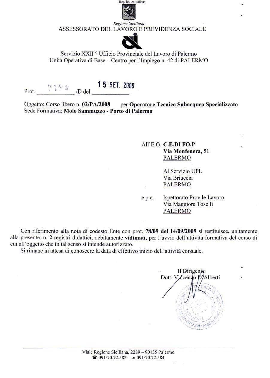 per Sommozzatori (O.T.S.) sono validi per l'iscrizione nel Registro