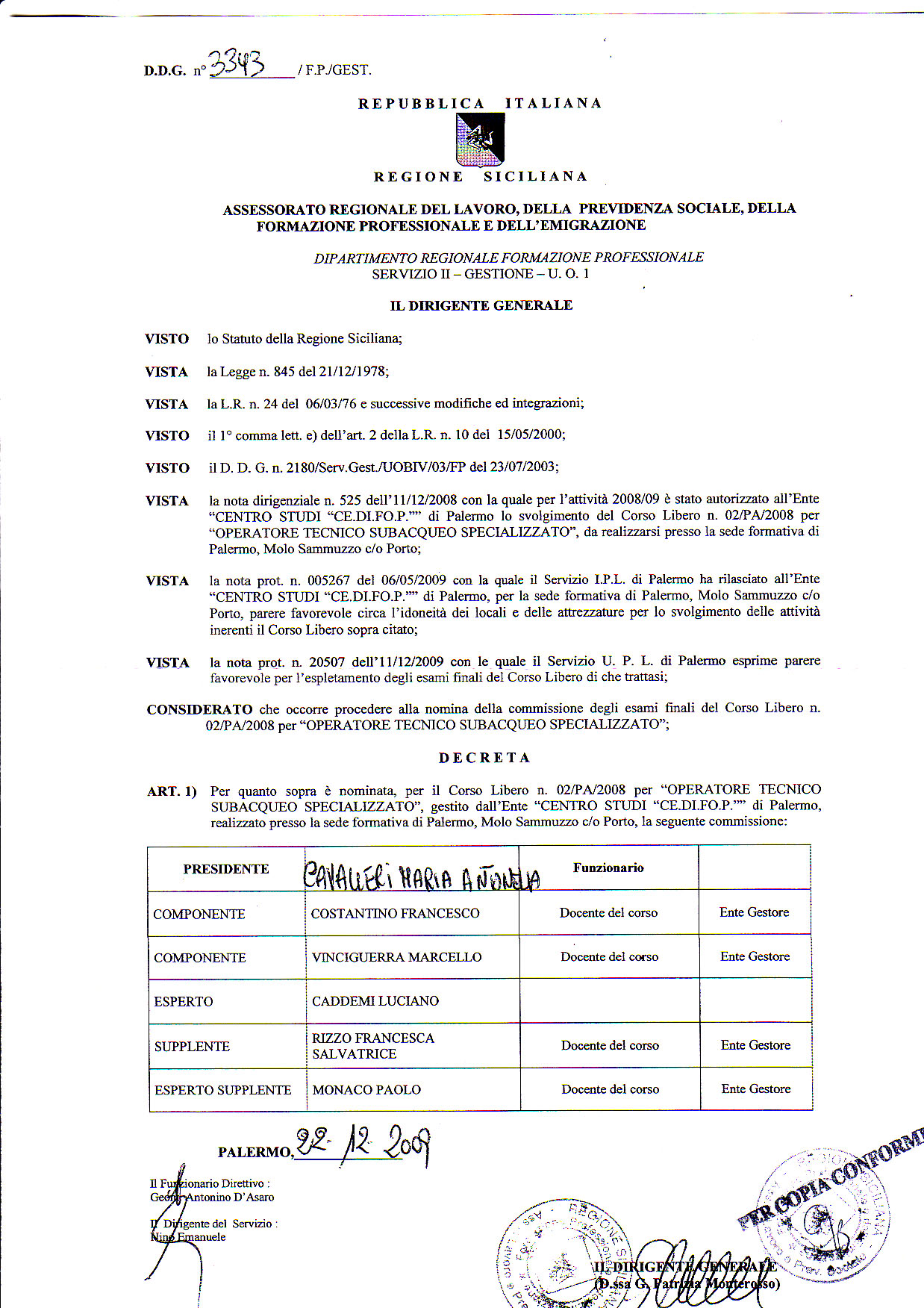 riconosciuto dal CEDIFOP, REGIONE SICILIANA, STATO ITALIANO e U. E.