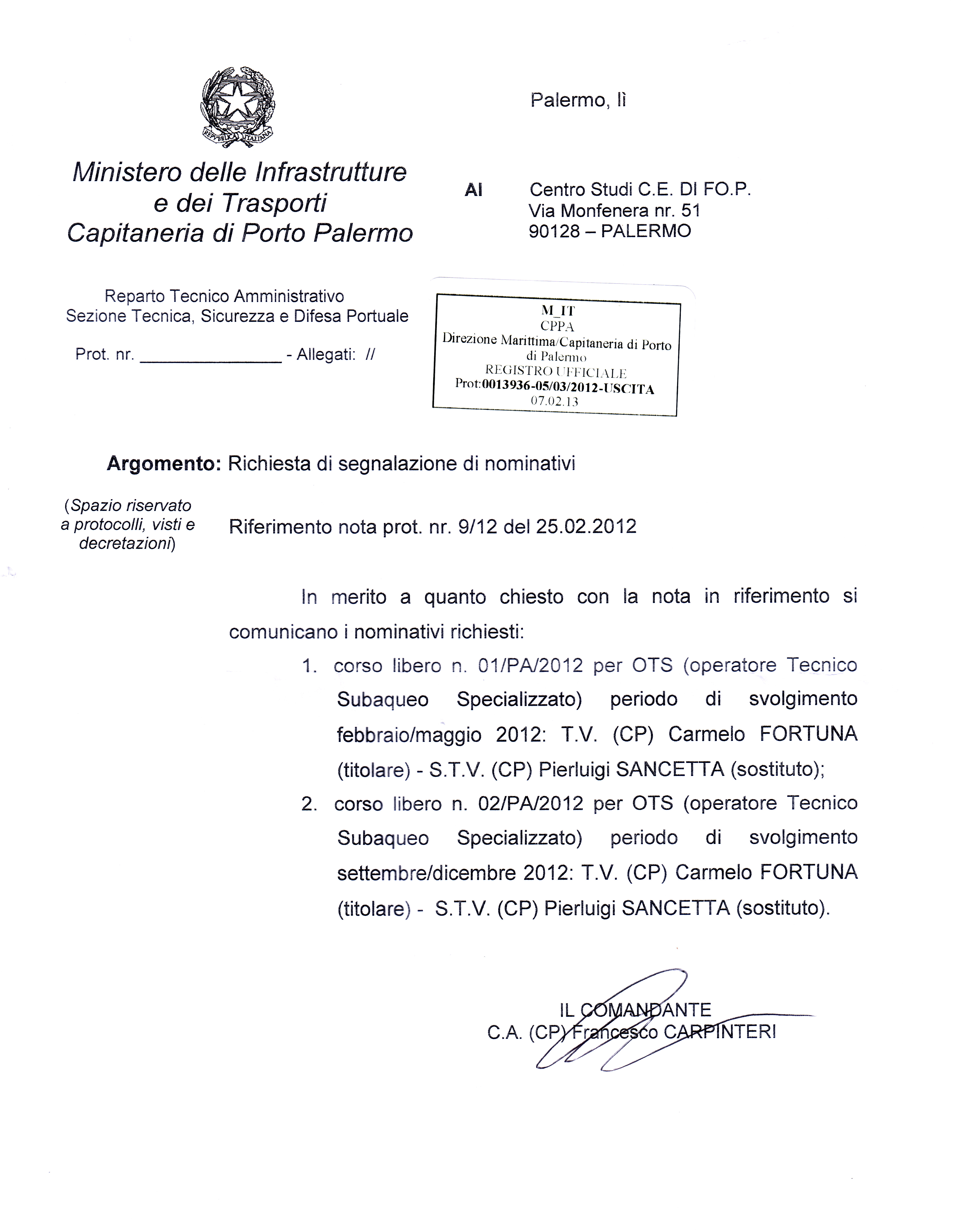 PALERMO (SSDE flangiatura/carenaggio manuale/ispezioni
