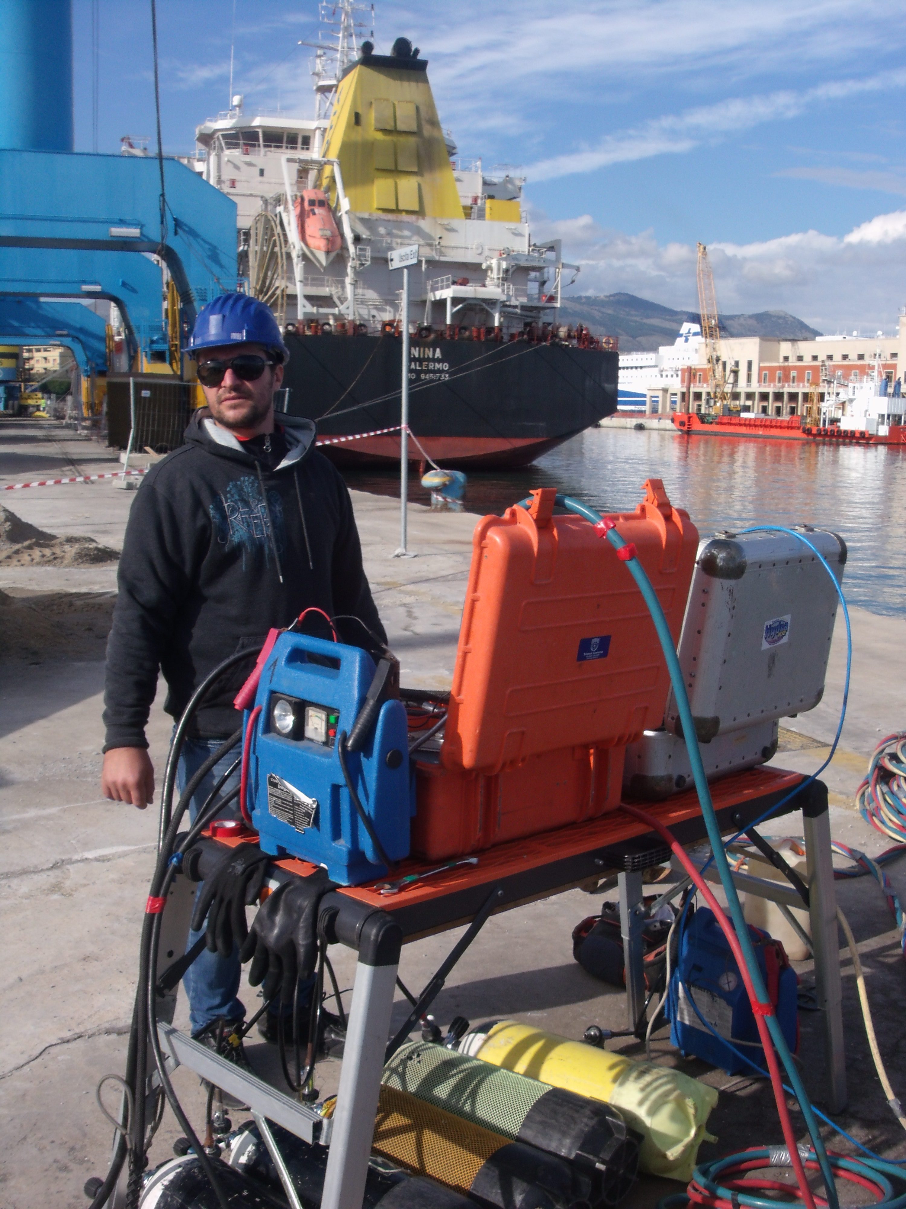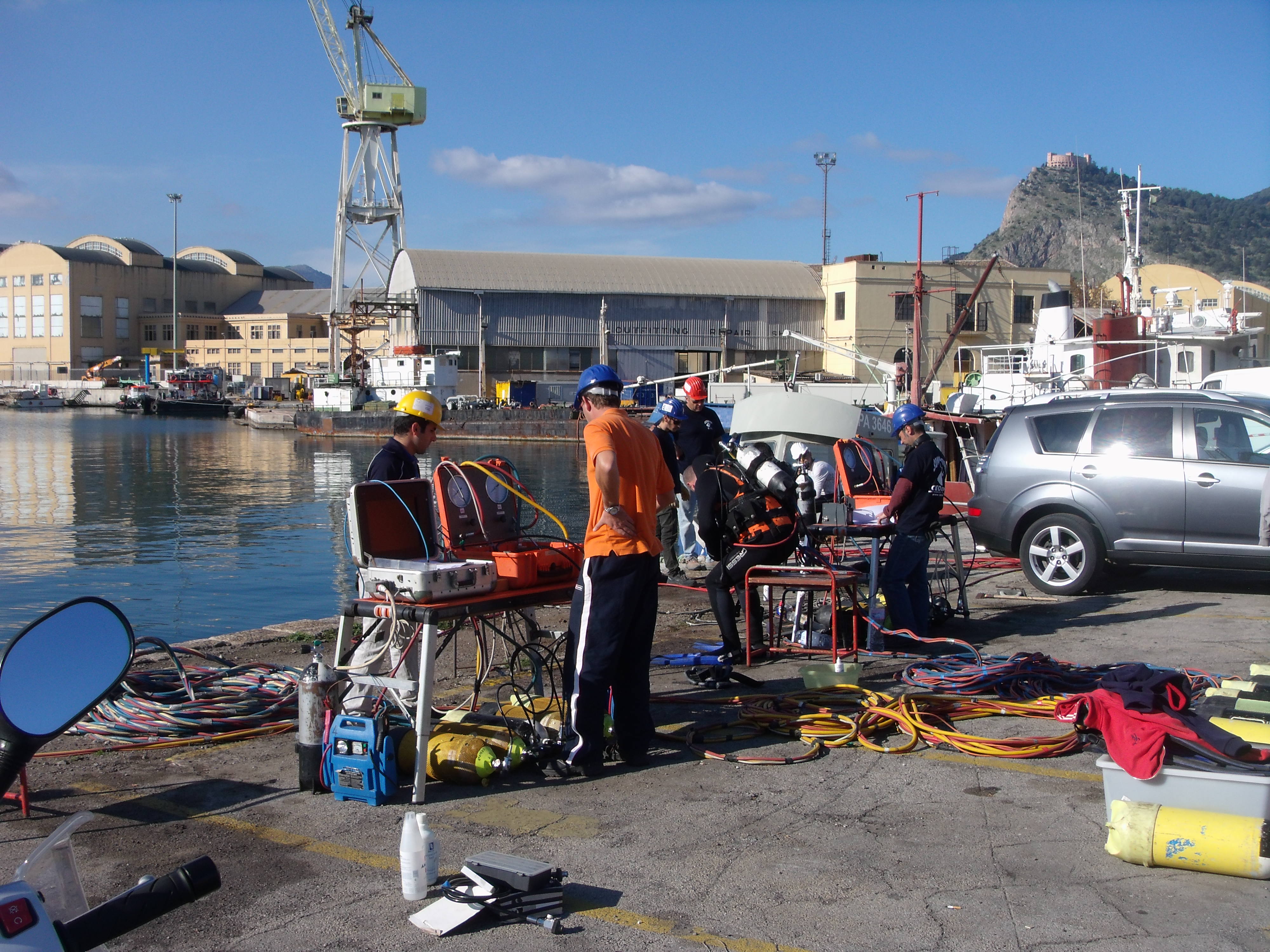 51° giorno dei 60 previsti del corso per OTS del CEDIFOP - Cantieri Navali - Porto di Palermo - Taglio subacqueo - Dicembre 2013 |