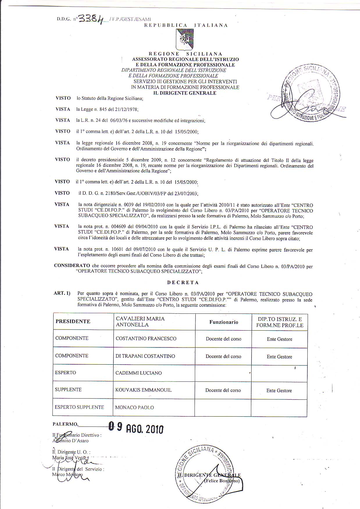 Assessoriale nomina commissione esami |