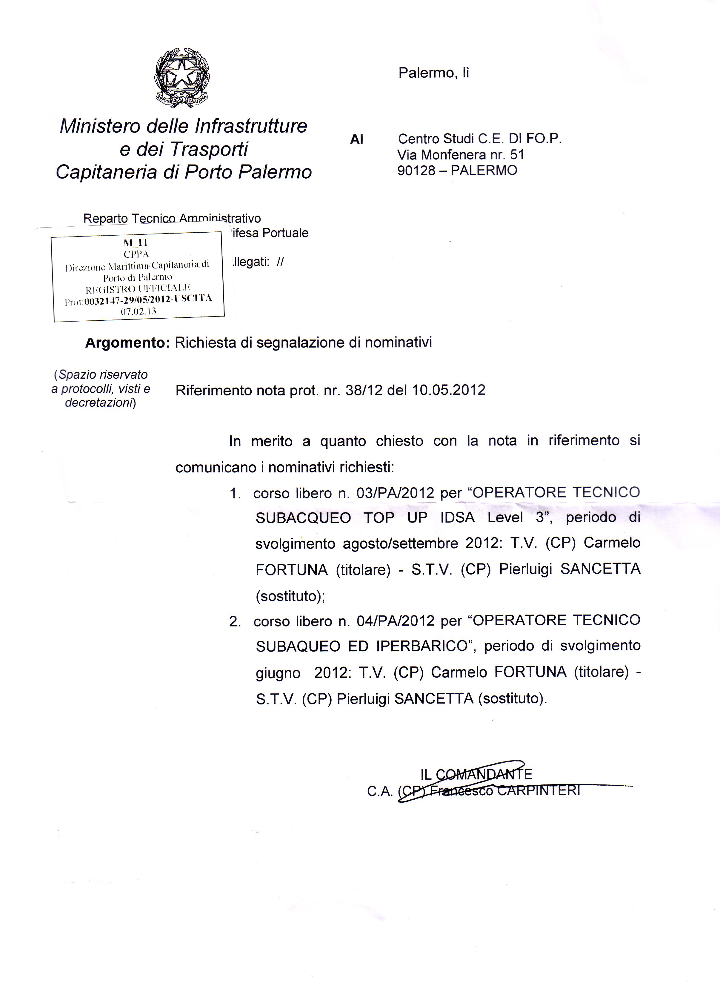Registro Sommozzatori).