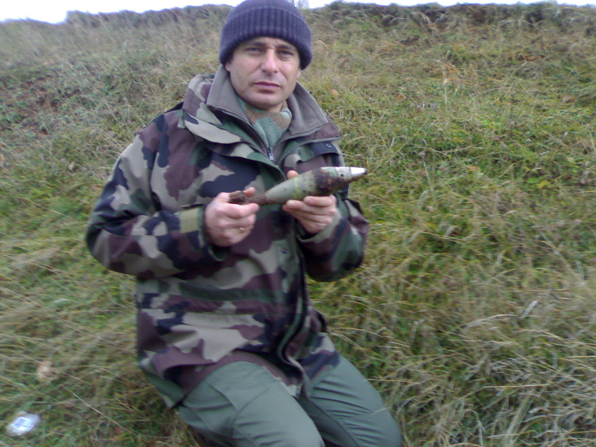 colpo da mortaio di 60 mm non esploso - lavori di bonifica a Sarajevo (Bosnia 2008) |