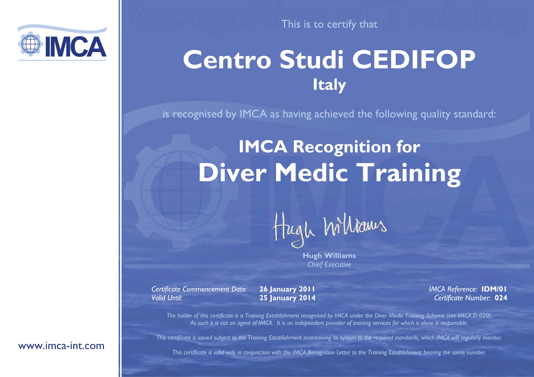 (IMCA Reference IDM/01 - Certificate Number 024),