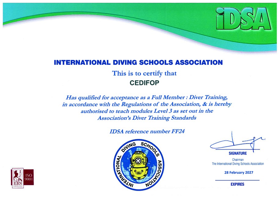Requisiti per l'accesso al corso: (IDSA LEVEL 1/scuba 0 - 30 metri) + IDSA LEVEL 2 / SURFACE 0 - 30 metri)